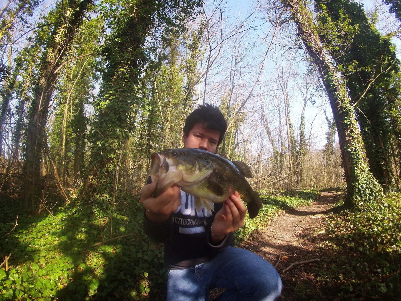 8 Mars, pour certains c'est l'ouverture de la truite ! Pour moi c'est traque du bass ! En fait, étant en week end sur la région parisienne, il n'y a pas tellement de parcours a truite. En revanche, contrairement à ce que l'on peut croire, il persiste encore quelques spots à Bass en ile de France. C'est donc vers 14h30 que nous décidons avec vincent, d'aller faire un tour sur un de nos spot à bass du coin. En arrivant sur le spot on localise 3 bass qui maraudent en surface. Mais connaissant très bien le spot, je savait pertinemment qu'il ne servait à rien de tenter de les faire tant qu' ils étaient au large. après avoir attendus qu'ils se postent, je décide de monté un flick Shake en wacky weight. Le fish a le nez collé à la berge, ni une ni deux, je cast mon worm a raz la berge et là, c'est le drame, le fish gobe, J'envoi directement le ferrage, le fish est dans les branche, le combat est sans pitié, je ne devais pas le laisser me prendre le moindre centimètre de fil au risque de casser. Je sort le fish et le résultat tombe :